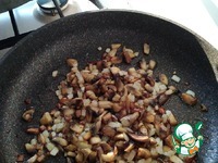 Обжарить грибы, добавить лук, морковь кубиками, сельдерей кубиками, соль, перец, мускатный орех и тушить до готовности. |