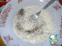 Хорошенько перемешать, добавив щепотку чёрного перца (или смесь перцев) и соль по вкусу. |
