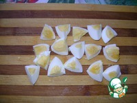 Каждое яйцо разделить на 8 частей (такая нарезка яиц и моркови более вкусна в салате!) |