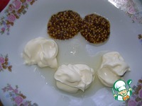 В тарелке смешать зерновую горчицу, майонез, лимонный сок и сахар. |