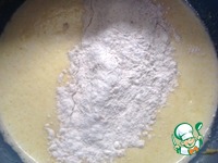 Постепенно всыпая мучную смесь, хорошо перемешать тесто. По консистенции тесто чуть гуще, чем на оладьи. |