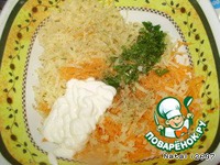 Приготовить начинку: натереть сыр, морковь, чеснок на мелкой терке, добавить сметану и нарезанную зелень. |