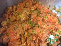 Филе красной рыбы нарубаем на мелкие кусочки с помощью ножа. Но можно использовать и фуд процессор или мясорубку. Правда Лазерсон говорит, что рубленные котлеты круче (смайлик) |