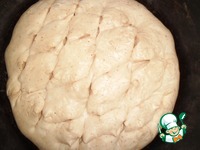 Выкладываем в форму для выпечки, делаем надрезы. Даём расстойку на 20-30 минут и отправляем в духовку, нагретую до 200 градусов.