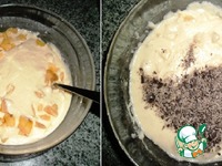 добавляем фрукты и крупную шоколадную стружку, аккуратно соединяем и выливаем в ту форму, где растапливали масло. |