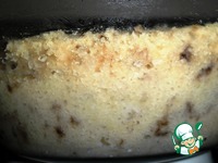 После полного остывания аккуратно перевернуть форму и вытряхнуть манник. Холодную сметану взбить с сахаром и залить пирог. Верх можно присыпать какао или шоколадом. Охладить в холодильнике. |