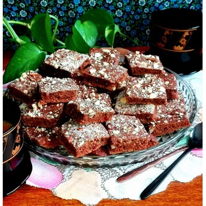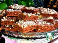 Противень из духовки вынула и сразу же нарезала квадратиками. |