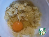 Ну вот, наша картошка готова. Разминаем ее и добавляем желток. Никогда не пользуйтесь блендером при разминке картошки. Потому что это будет слизкая масса. Картошку смешиваем с яйцом. |