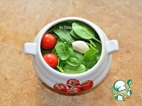 Добавить шпинат, по 2 черри и по 1 зубчику чеснока. |