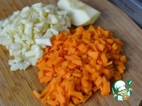 150 граммов нарезанной тыквы отложить в сторону, она нам еще понадобится. Остальную тыкву мелко нарезать. Яблоко почистить и мелко нарезать на кусочки. |