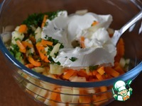 В миске смешать мелко нарезанную тыкву, яблоки, петрушку и сыр Филадельфию. Посолить и поперчить. Перемешать. |