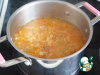 Такой суп с богатым составом вполне можно готовить и без мяса. Но у меня вариант на курином бульоне. Бульон я сварила из голеней с добавлением пучка зелени. |