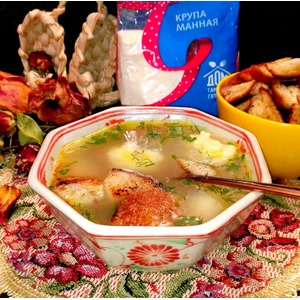 Описание: Сытный, наваристый бульон с чесночными сухариками.
