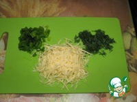 Лук и укроп измельчить. Сыр, который хорошо плавится, натереть на мелкой терке. |