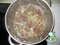 Заливаем холодной водой и доводим до кипения, снимаем пену и убавляем температуру. |