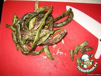 Зеленую стручковую фасоль режим на 3 части и добавляем к грибам. |