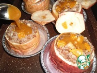 Вынуть из духовки яблоки, снять крышечку, заправить мёдом. Мёд, тая, растекается по начинке и пропитывает её чудесным вкусом и ароматом. |