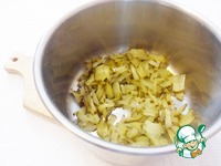 Переложить в сотейник, залить небольшим количеством воды, припустить до испарения воды в течение 5 минут. Затем добавить огуречный рассол. Прокипятить. Огурцы для рассольника готовы. |