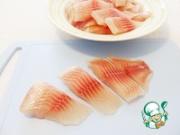 Филе рыбы (у меня филе тилапии) нарезать кусочками. |