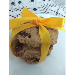 В блендере перебиваем овсяные хлопья быстрого приготовления. Перебить важно не в муку, а чтобы остались кусочки. Масло растапливаем. В масло добавляем 2/3 хлопьев, яйцо, сахар, ваниль. Хорошо вымешиваем ложкой и ждём 2-3 минуты. Хлопья напитаются и тогда можно добавить остаток сухих хлопьев. Количество может быть отличным от рецепта (зависит от самих хлопьев). Консистенция теста должна быть такой, чтобы можно было слепить шарик, но само тесто должно липнуть к рукам. В самом конце добавляем клюкву (или сухофрукты по вашему вкусу). Макаем руки в воду, скатываем шарик и расплющиваем его в печеньку высотой около 5-7 мм. (тоньше будет хрустеть, толще не пропечется). Выпекаем в заранее разогретой духовке на 180 градусах около 20 мин. Как только низ начнет румянится - печенье готово. Вкус необычный, чувствуется текстура, но в моей семье все оценили. Приятного аппетита!
