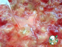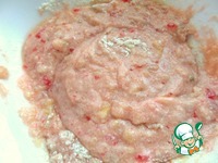 Затем снова перемешать, тесто стало рыхлистое, но, к сожалению, потеряло розовый цвет, он впитался в мучной состав. |