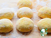 Подошедшее тесто выложить на присыпанную мукой рабочую поверхность, слегка обмять и разделить тесто на 7-8 частей. Из каждой сформировать булочку. |