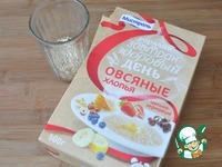 Для измерения брала обычный гранёный стакан. Берём овсяные хлопья, у меня цельно-зерновые от "Мистраль", измельчаем блендером. Но не в муку, а чтобы оставались пластинки хлопьев. |