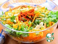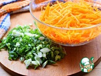 Пока тесто подходит, приготовить начинку. Тыкву нарезать тонкой соломкой или натереть ее на терке для корейских салатов. Зеленый лук нарезать не очень мелко. |