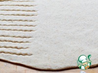 На бОльшую часть теста (без разрезов) равномерно выложить начинку, отступив от краев по 1-1,5 см. |