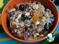 Киноа смешать с сухофруктами и медом. При подаче сверху посыпать грецкими орехами. Каша - десерт готова! |