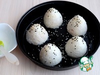 Смазать зразы растительным маслом при помощи кулинарной кисточки, посыпать кунжутом и отправить в духовой шкаф и слегка запечь. |