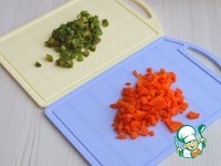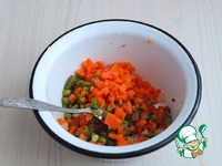 Нарезать кубиками отваренную стручковую фасоль и морковь. |