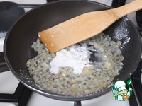 В сковороду добавить 2 ст. ложки растительного масла, тушить лук на медленном огне до прозрачности и мягкости. Затем добавить муку (1 ст. ложка). Пассеровать муку до золотистого цвета. |
