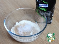 Делаю тесто для булочек. В глубокую миску всыпают муку, дрожжи, сахар и соль. |