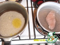 Курицы не было целой, а была одна грудинка, ставим отваривать. Отдельно варим рис. |