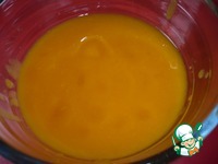 Затем слить немного жидкости из отваренной тыквы и измельчить блендером в однородную тыквенную массу. |