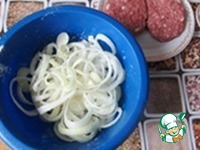 Добавляем соль и сахар, перемешиваем. Через 5 минут лук выделит сок, а мы всыпаем в лук муку и ещё раз перемешиваем |