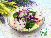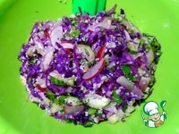 Описание: Вкусный весенний салат из кускуса, краснокочанной капусты с редисом, огурцом, зеленью и заправкой. Кускус — это уникальный продукт из твёрдых сортов пшеницы, который готовится в считанные минуты, он обогатил салат своей насыщенностью и вкусом. О пользе овощей говорить не приходится, об этом знают все. Итак, предлагаю освежающий, аппетитный салат с кускусом и овощами.