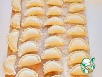 Складывайте готовые вареники на подпыленную мукой разделочную доску |