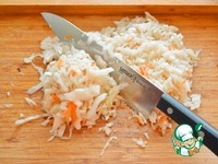 Теперь готовим начинку. Квашеную капусту (если сильно кислая) промойте, хорошо отожмите от рассола и мелко нарежьте |