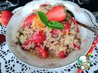 Описание: Как известно, щи да каша - пища наша. Но вот хочется иной раз разнообразия, особенно, когда за окном так уныло. В поисках чего-то эдакого обратила я внимание на киноа, незнакомый для меня злак. Очень интересно было, действительно ли, как гласила надпись на упаковке, зерна обладают ореховым привкусом и лопаются как икринки. Подтверждаю-обладают и лопаются. А в сочетании с клубникой, мятой и ореховым маслом - это скорее шикарный десерт, чем "каша-пища наша". Не проходите мимо. Будет вкусно!