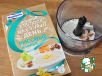 Берём рисовые хлопья ("Мистраль") и миндаль, измельчаем блендером практически в муку. |