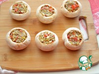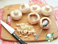 Шляпки шампиньонов подсолите немного изнутри и нафаршируйте полученной начинкой |