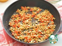 На сковороде в масле слегка поджарьте лук, мякоть грибов и болгарский перец. Снимите с огня, добавьте щепотку растёртой приправы для плова и немного соли |