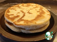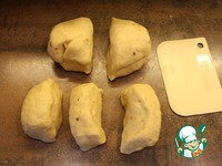 Тесто долго замешивать не нужно, как только стало однородным и перестало липнуть к рукам, значит готово. Скатываем колбаской и делим на нужное нам количество частей. Если вам нужны лепёшки к завтраку или к супу, то вполне достаточно разделить на 4 части. Если нужны тонкие лепёшки для дальнейшего использования в готовке, то можно разделить на 6 или 8 частей. Накрываем полотенцем, чтобы не обветрились. Я сначала колбаску разделил пополам, затем одну часть ещё раз пополам, а вторую разделил на 3 части, мне нужны были три штуки потоньше... |