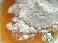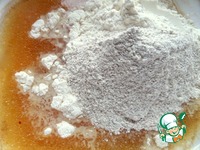 Перелить в широкую миску, смешать с обычной мукой. |