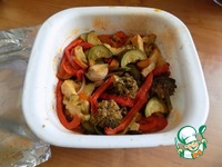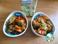 Описание: Запечённые овощи ассорти в томатном соке с оливковым маслом и рисом с киноа. Полезная диетическая еда и отличная еда в Пост.