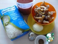 Подготовим продукты. Рис (длиннозёрный рис Ориент от ТМ "Мистраль") поставим вариться в подсоленной воде, лук мелко порубим. Достанем грибы (у меня опята замороженные). |