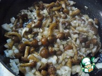На небольшом количестве масла обжарим сначала грибы, затем добавим лук. Не забываем посолить, поперчить и я добавляю кориандр. Обжариваем до готовности. |