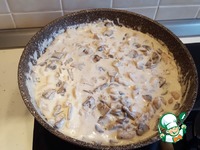 Добавить грибы к курице и жарить все вместе еще минуту. |